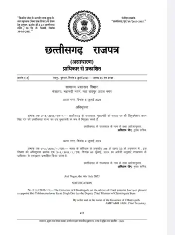 सिंहदेव बने उप मुख्यमंत्री : राज्य सरकार की ओर से आफिशियल नोटिफिकेशन जारी