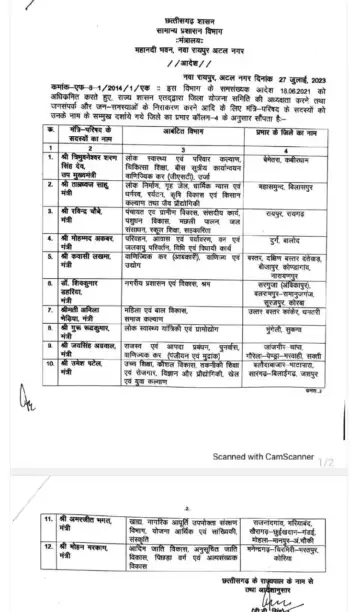 रायपुर । छत्तीसगढ़ में जल्द ही विधानसभा चुनाव होने वाला है। जिसकी तैयारियां शुरु हो गई है। राज्य सरकार ने कैबिनेट मंत्रियों के जिला प्रभार में बदलाव किया है। इस संबंध में सामान्य प्रशासन विभाग ने आदेश भी जारी कर दिया है।