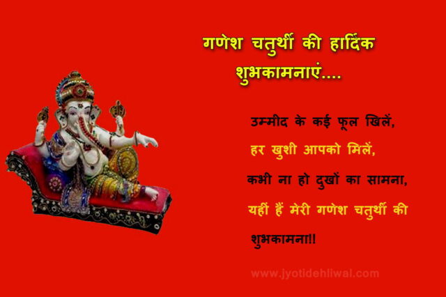 ”आपके जीवन से अंधकार मिटे हर ओर खुशियों के दीप जले बप्पा के आशीर्वाद से आपके सपनों के फूल खिले। गणेश जी की कृपा से हर राह आसान हो जाए आपका हर दिन त्यौहार बने और हर मनोकामना पूरी हो जाए।”