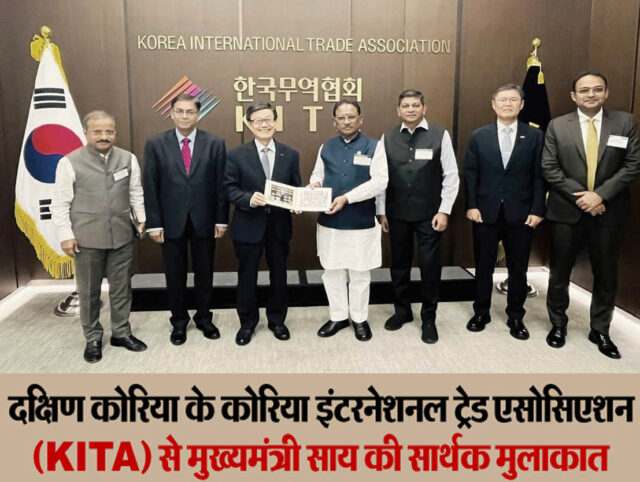 ”दक्षिण कोरिया के कोरिया इंटरनेशनल ट्रेड एसोसिएशन (KITA) से मुख्यमंत्री विष्णुदेव साय की सार्थक मुलाकात निवेश, तकनीकी सहयोग और स्किलिंग से छत्तीसगढ़ के औद्योगिक विकास को नई दिशा देने पर हुई चर्चा”