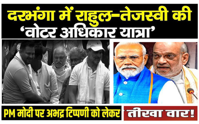 बिहार के दरभंगा में कांग्रेस नेता राहुल गांधी की वोटर अधिकार यात्रा के दौरान विवादित घटना हुई। इस दौरान प्रधानमंत्री नरेंद्र मोदी और उनकी स्वर्गीय मां के खिलाफ अपमानजनक शब्द बोले गए।