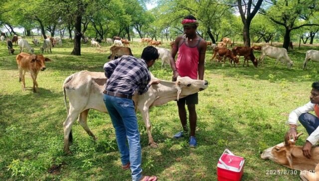 पशु चिकित्सा विभाग द्वारा पशु चिकित्सा शिविर का आयोजन कर पशुधन को लम्फी बीमारी से बचाव हेतु टीकाकरण किया गया। शिविर में पशुओं का स्वास्थ्य परीक्षण किया गया और एवं 120 लम्फी बीमारी से बचाव हेतु टीकाकरण किया गया। इसके साथ ही 30 पशुओं को कृमिनाशक दवापान, एक पशु में कृत्रिम गर्भाधान तथा 11 पशुओं हेतु औषधि वितरण किया गया।