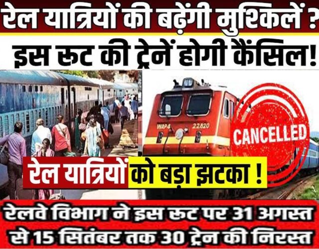 “Train Cancelled Update: रेलवे विभाग ने इस रूट पर 31 अगस्त से 15 सितंबर तक 30 ट्रेन की निरस्त”