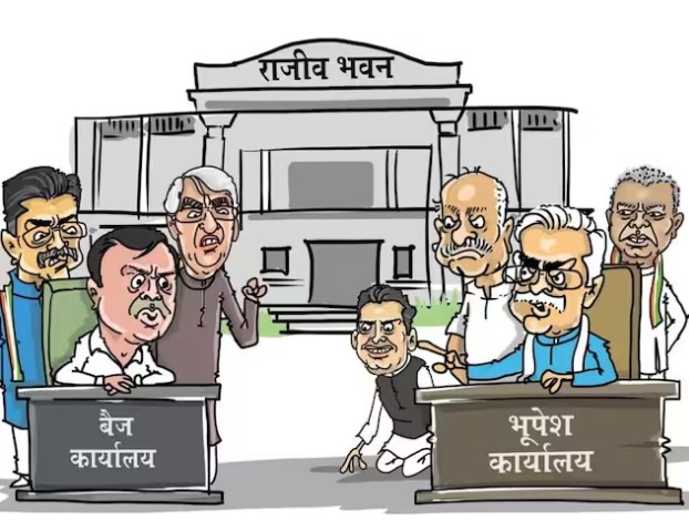 रायपुर में राजनीति का पारा एक बार फिर चढ़ गया है. इस बार मामला कांग्रेस की गुटबाजी को लेकर सामने आया, और मौका भुनाने में भाजपा ने कोई देरी नहीं की. भाजपा ने सोशल मीडिया पर एक कार्टून पोस्टर जारी किया है, जिसमें कांग्रेस की अंदरूनी कलह को मज़ाकिया अंदाज़ में दिखाया गया है.