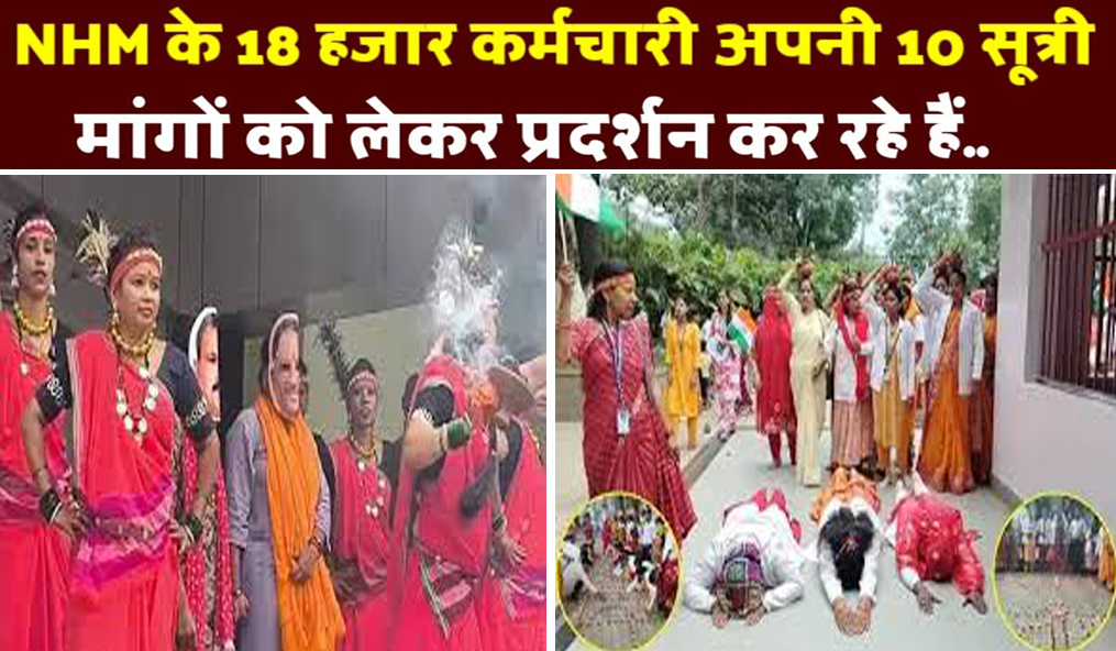 10 सूत्रीय मांगों को लेकर प्रदर्शन कर रहे एनएचएम के कर्मचारी अपनी मांगे मनवाने लगातार अलग-अलग तरीकों से प्रदर्शन…