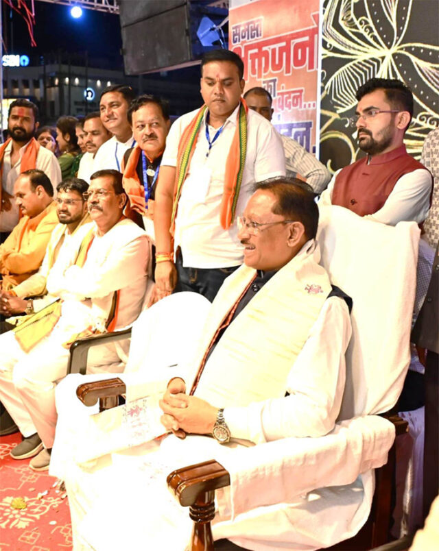 मुख्यमंत्री विष्णु देव साय 8 सितंबर की देर रात राजधानी रायपुर के हृदयस्थल जयस्तंभ चौक स्थित नगर निगम द्वारा निर्मित स्वागत मंच पर पहुंचे और ऐतिहासिक गणेश विसर्जन यात्रा में शामिल होकर झांकियों का अभिनंदन किया।