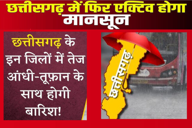मौसम विभाग से मिली जानकारी के अनुसार, छत्तीसगढ़ की राजधानी रायपुर, राजनांदगांव, बिलासपुर, महासमुंद, धमतरी, गरियाबंद, दुर्ग, बलौदाबाजार, बालोद, बेमेतरा, कबीरधाम, खैरागढ़-छुईखदान-गंडई, सारंगढ़, बिलाईगढ़, बस्तर, मोहला-मानपुर-अम्बागढ़ चौकी, रायगढ़, कोंडागांव और कांकेर में बारिश होने की संभावना जताई है। इतना ही नहीं मौसम विभाग ने प्रदेश के कई जिलों में बारिश के साथ-साथ बिजली गिरने की भी संभावना जताई है।