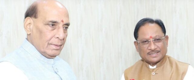 छत्तीसगढ़ के मुख्यमंत्री श्री विष्णुदेव साय ने आज नई दिल्ली में केंद्रीय रक्षा मंत्री श्री राजनाथ सिंह से उनके निवास पर सौजन्य मुलाक़ात की। बैठक में बिलासपुर एयरपोर्ट के विस्तार, रक्षा क्षेत्र के विकास, पूरे प्रदेश में सेना भर्ती रैलियों के आयोजन एवं नौसैनिक पोतों के नामकरण जैसे कई महत्वपूर्ण विषयों पर सार्थक चर्चा हुई। इस अवसर पर केंद्रीय आवासन एवं शहरी कार्य राज्यमंत्री श्री तोखन साहू और मुख्यमंत्री के प्रमुख सचिव श्री सुबोध कुमार सिंह भी उपस्थित थे।