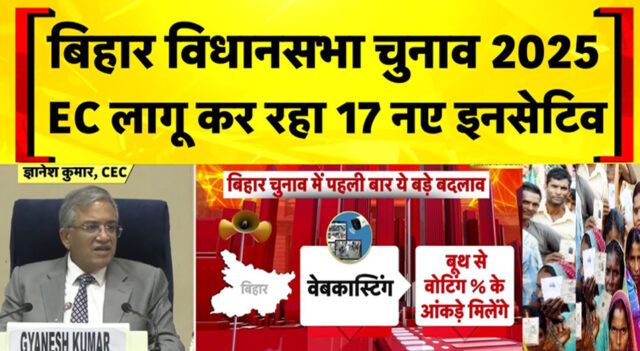 बिहार चुनाव की तारीखों के ऐलान से पहले चुनाव आयोग ने 17 नई पहल की ऐलान किया। मुख्य चुनाव आयुक्त ज्ञानेश कुमार ने इसकी जानकारी दी। उन्होंने कहा कि यह 17 नई पहल, बिहार चुनाव में लागू होंगी।