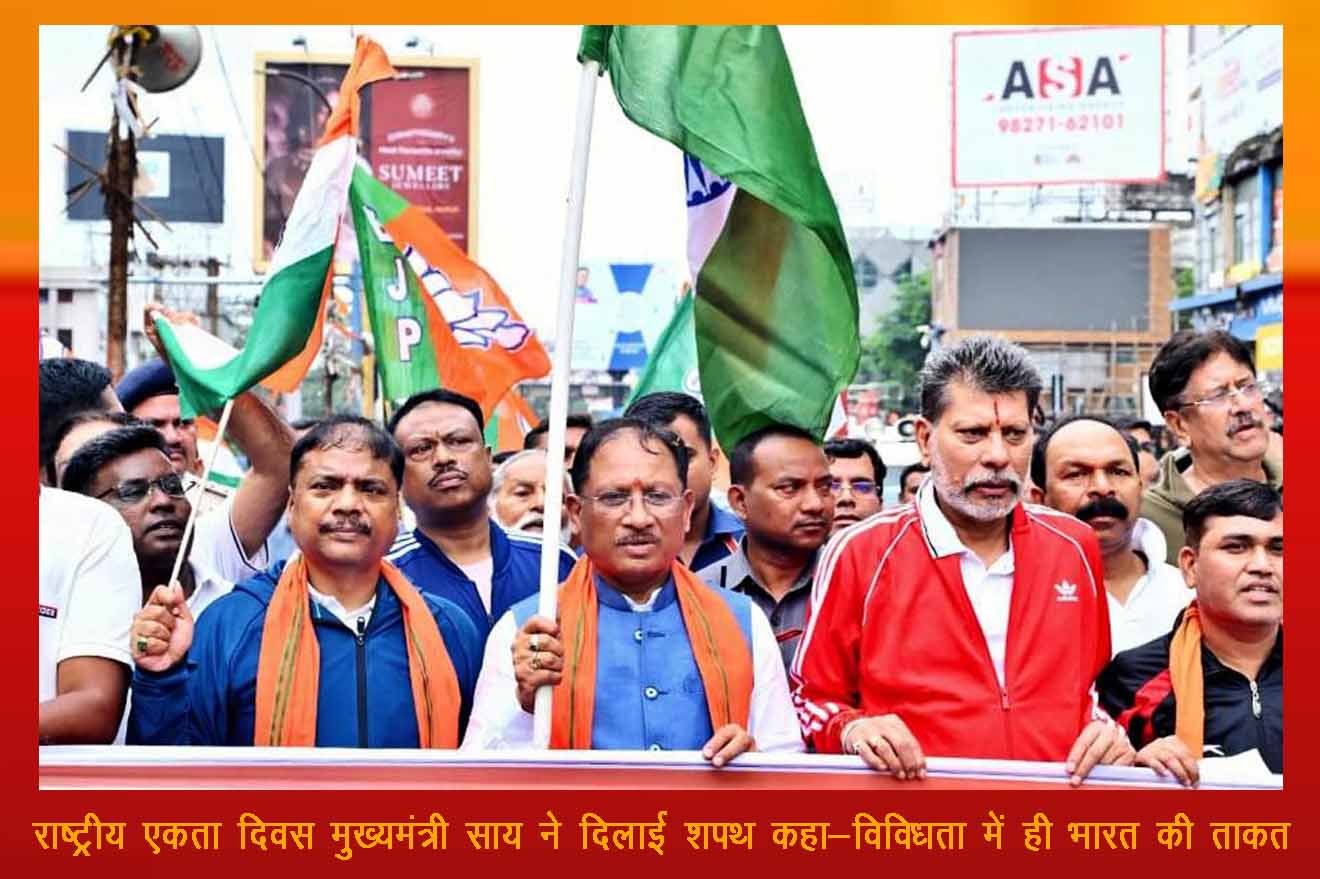 इस अवसर पर मुख्यमंत्री साय ने स्कूली बच्चों, जनप्रतिनिधियों और आमजनों के साथ राजधानी रायपुर के शास्त्री चौक से शारदा चौक तक आयोजित ‘एकता दौड़’ में शामिल होकर ‘एक भारत, श्रेष्ठ भारत’ का संदेश दिया।
