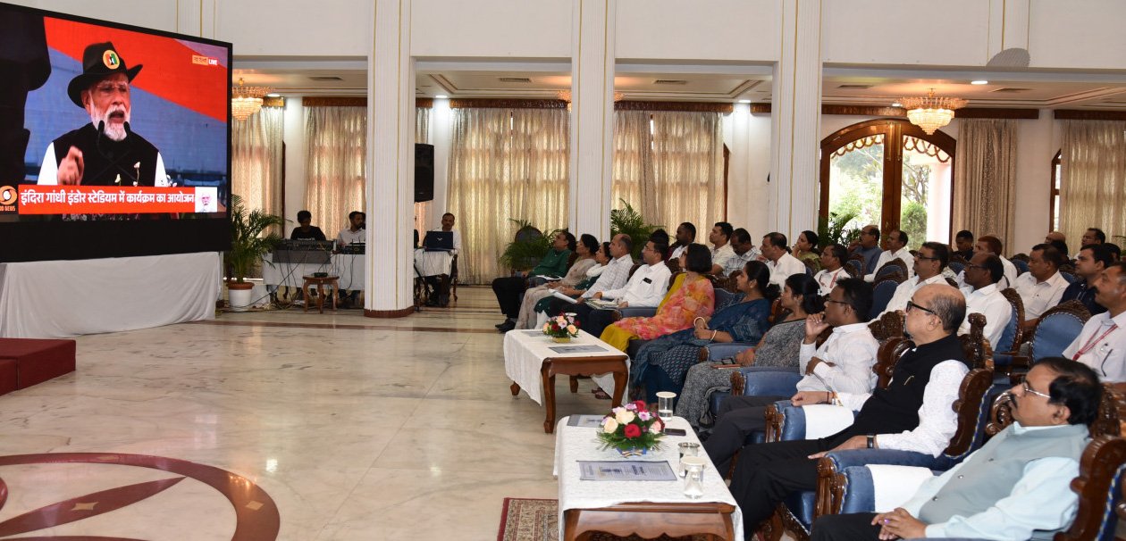 रायपुर : भारत के राष्ट्रीय गीत “वंदे मातरम्‘‘ के 150 वर्ष पूर्ण होने के उपलक्ष्य में आज राजभवन, रायपुर में भावपूर्ण सामूहिक गायन का आयोजन किया गया। इस अवसर पर राज्यपाल श्री रमेन डेका की गरिमामयी उपस्थिति रही। कार्यक्रम का सीधा प्रसारण नई दिल्ली से किया गया, जहां प्रधानमंत्री श्री नरेन्द्र मोदी ने इस ऐतिहासिक आयोजन का शुभारंभ किया। राजभवन में अधिकारियों एवं कर्मचारियों ने उत्साहपूर्वक कार्यक्रम का लाइव प्रसारण देखा और एक स्वर में “वंदे मातरम्” का सामूहिक गायन किया। राजभवन के छत्तीसगढ़ मंडपम में आयोजित इस कार्यक्रम में उपस्थित सभी ने राष्ट्रीय भावना और मातृभूमि के प्रति समर्पण की भावना के साथ राष्ट्रीय गीत का सामूहिक रूप से गायन किया। इस अवसर पर राज्यपाल के सचिव डॉ. सी. आर. प्रसन्ना सहित अधिकारी-कर्मचारी उपस्थित थे।