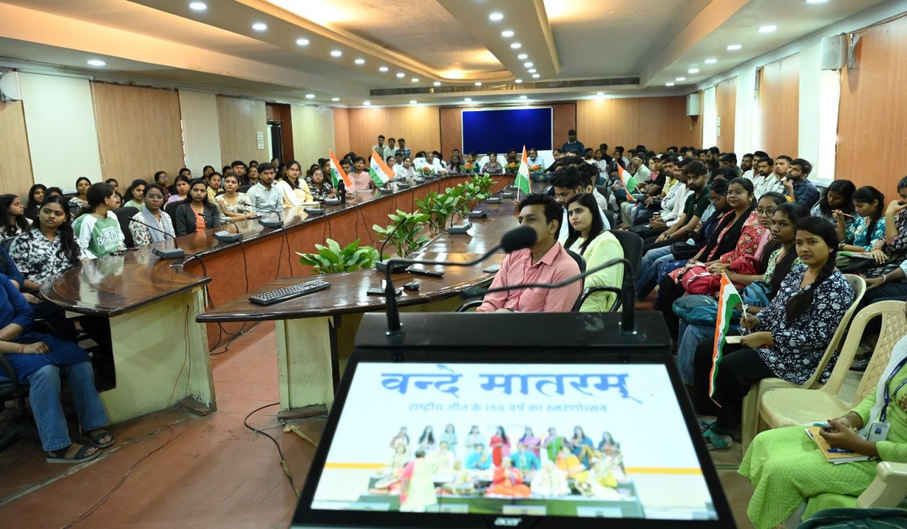 रायपुर: मां भारती को समर्पित राष्ट्रगीत “वन्देमातरम” की 150वीं वर्षगाठ के शुभ अवसर पर आज कृषि महाविद्यालय रायपुर में राष्ट्रीय कार्यक्रम का सीधा प्रसारण प्रातः 10:00 बजे से 11:00 बजे तक किया गया। कार्यक्रम की शुरूआत माननीय प्रधानमंत्री जी के संबोधन के सीधे प्रसारण के साथ हुआ। कृषि महाविद्यालय, रायपुर के सेमिनार हॉल में आयोजित इस प्रसारण कार्यक्रम में डॉ. आरती गुहे, अधिष्ठाता कृषि महाविद्यालय, रायपुर, डॉ. संजय शर्मा, अधिष्ठाता छात्र कल्याण, समस्त अधिकारी एवं कर्मचारीगण, स्नातक, स्नातकोत्तर एवं पी.एच.डी. के 200 से अधिक छात्र-छात्राओं ने उत्साहपूर्वक भाग लिया। कार्यक्रम का शुभारंभ राष्ट्रगीत से हुआ, जिसके पश्चात माननीय प्रधानमंत्री जी के उद्बोधन का सीधा प्रसारण किया गया।