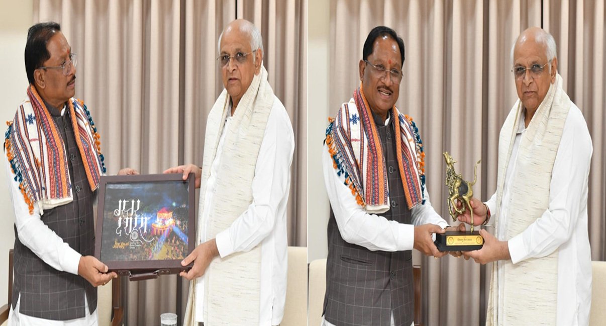 रायपुर: मुख्यमंत्री श्री विष्णु देव साय ने आज गांधीनगर स्थित मुख्यमंत्री आवास में गुजरात के मुख्यमंत्री श्री भूपेंद्र पटेल से सौजन्य भेंट की। इस अवसर पर दोनों मुख्यमंत्रियों ने परस्पर सहयोग एवं विकास के अनुभव साझा किए।