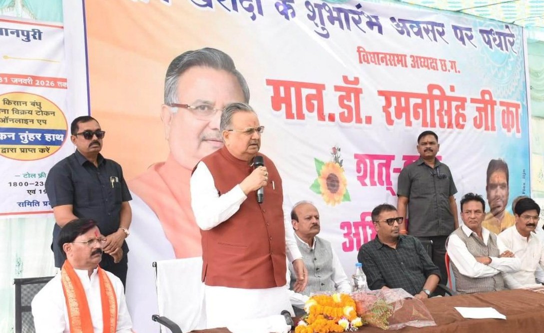 विधानसभा अध्यक्ष डॉ. रमन सिंह ने कहा कि खरीफ विपणन वर्ष 2025-26 अंतर्गत आज से पूरे प्रदेश में धान खरीदी की शुरूआत हो रही है और प्रतिदिन सुबह 9 बजे से शाम 5 बजे तक धान खरीदी की जाएगी। उन्होंने कहा कि शासन द्वारा समर्थन मूल्य एवं कृषक उन्नति योजना के तहत किसानों से 3100 रूपए प्रति क्विंटल की दर और प्रति एकड़ 21 क्विंटल तक के मान से धान खरीदी की जा रही है। मुख्यमंत्री श्री विष्णु देव साय द्वारा किसानों को धान का वाजिब कीमत देने, समय पर खरीदी करने, समय पर उठाव करने तथा अन्य कार्यों के लिए सभी व्यवस्थाएं की गई है। उन्होंने कहा कि धान खरीदी के संबंध में किसी भी तरह की समस्या के समाधान के लिए जनप्रतिनिधियों एवं अधिकारियों से संपर्क कर सकते है।