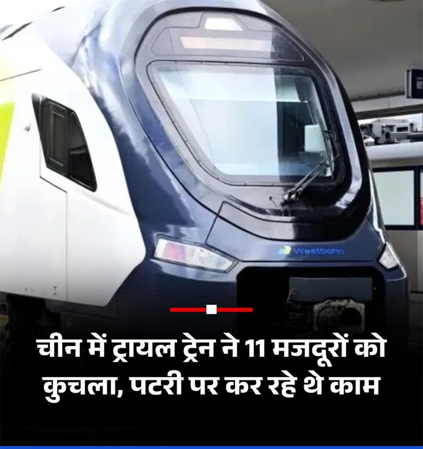 चीन में एक ट्रायल ट्रेन ने 11 मजदूरों को कुचल दिया है, जिससे सभी की मौत हो गई है. 2 मजदूरों के घायल होने की भी बात कही जा रही है. ट्रेन से भूकंप परीक्षण का सामान ले जाया जा रहा था.