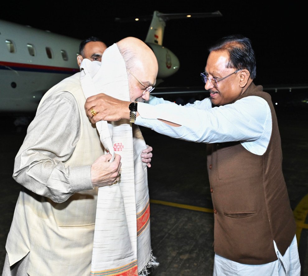 रायपुर: केंद्रीय गृह मंत्री श्री अमित शाह का स्वामी विवेकानंद विमानतल पर मुख्यमंत्री श्री विष्णु देव साय ने किया आत्मीय स्वागत… केंद्रीय गृह मंत्री श्री अमित शाह के रायपुर आगमन पर स्वामी विवेकानंद विमानतल में मुख्यमंत्री श्री विष्णु देव साय ने आत्मीय स्वागत किया।