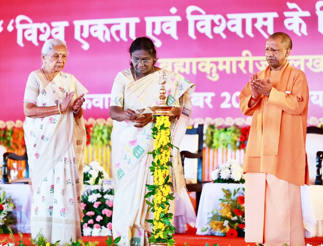 लखनऊ के सुल्तानपुर रोड स्थित गुलजार उपवन में शुक्रवार को ब्रह्मकुमारीज संस्थान की ओर से राज्यस्तरीय ध्यान योग कार्यक्रम का आयोजन किया गया। इस कार्यक्रम में मुख्य अतिथि के रूप में राष्ट्रपति द्रौपदी मुर्मू शामिल हुईं।