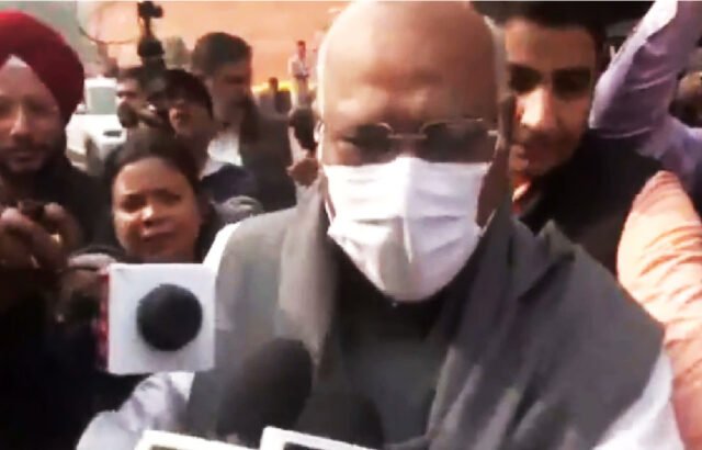 संसद के बाहर संयुक्त विपक्ष द्वारा मतदाता सूची के विशेष गहन पुनरीक्षण मुद्दे पर विरोध प्रदर्शन के दौरानराज्यसभा में विपक्ष के नेतासांसद मल्लिकार्जुनखड़गे ने कहाहम लोकतंत्र को बचाने और अन्याय के खिलाफ विरोध प्रदर्शन जारी रखेंगे।