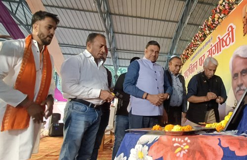छीरपानी में आयोजित राष्ट्र चिंतन संगोष्ठी का शुभारंभ पुष्पेंद्र कुलश्रेष्ठ, प्रदेश भाजपा उपाध्यक्ष रामजी भारती, नगर पालिका अध्यक्ष रमन डोंगरे, भाजपा मंडल अध्यक्ष जसमीत सिंह बन्नोआना, विवेक गुप्ता और ट्रस्ट समिति अध्यक्ष मनोज अग्रवाल द्वारा मां बम्लेश्वरी व भारत माता के तेलचित्र पर दीप प्रज्वलन कर किया गया।