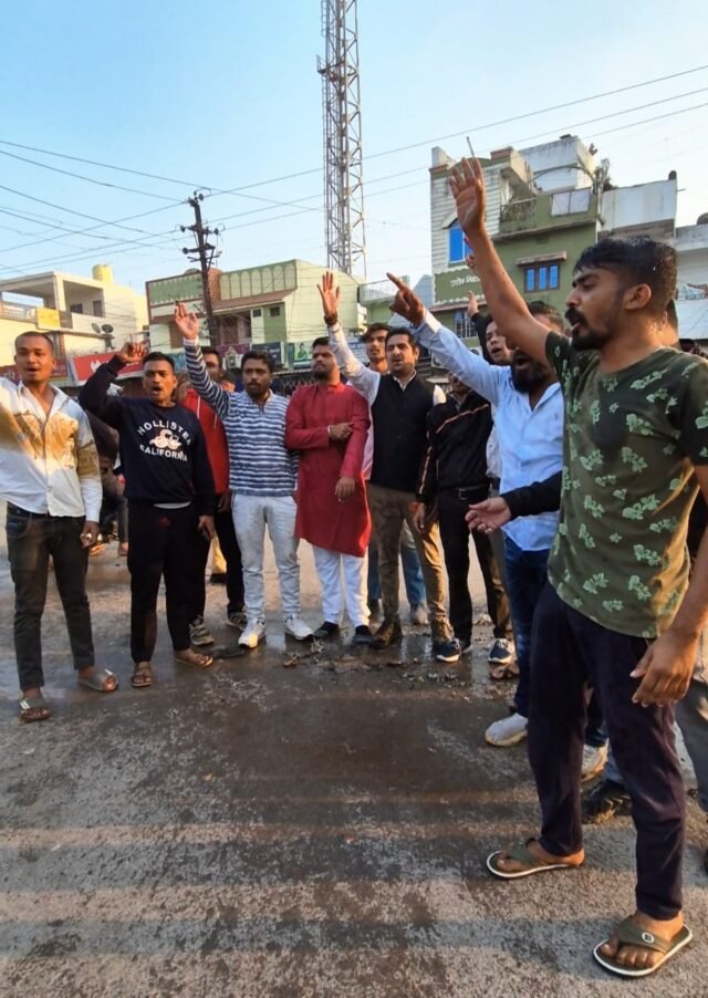 राजनांदगांव। भाजपा सांसद सुधांशु त्रिवेदी द्वारा गाय को लेकर दिए गए कथित विवादित बयान के विरोध में राजनांदगांव में कांग्रेस नेताओं और कार्यकर्ताओं ने जोरदार प्रदर्शन किया। यह प्रदर्शन युवा नेता व पूर्व पार्षद ऋषि शास्त्री तथा प्रदेश कांग्रेस अल्पसंख्यक विभाग के सचिव विशु अजमानी के संयुक्त नेतृत्व में किया गया।