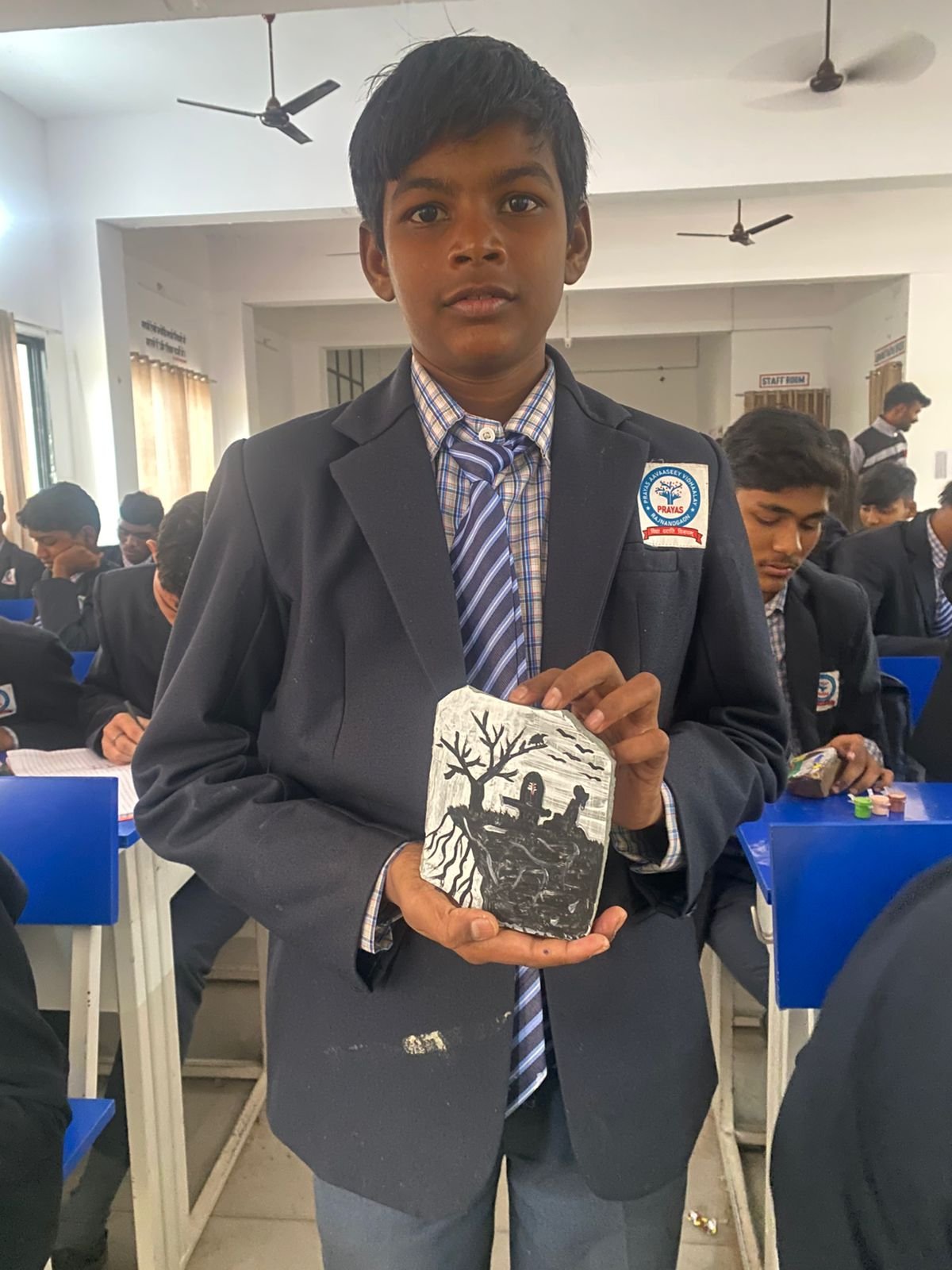 इस गतिविधि में बच्चों ने साधारण पत्थरों को रंगों और डिजाइनों के जरिए आकर्षक कलाकृतियों में बदल दिया। रंगीन पत्थरों पर बनाए गए विभिन्न डिजाइनों ने सभी को मंत्रमुग्ध कर दिया। विद्यार्थियों ने अपनी कला के माध्यम से न केवल रचनात्मकता, बल्कि एकाग्रता, धैर्य और सृजनशील सोच जैसे महत्वपूर्ण गुण भी प्रदर्शित किए।
