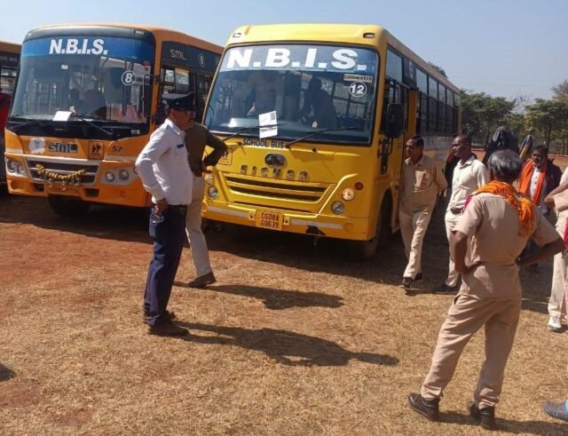 राजनांदगांव। सड़क सुरक्षा माह के तहत पुलिस और परिवहन विभाग ने आज शहर के विभिन्न स्कूलों की स्कूली बसों का संयुक्त निरीक्षण किया। इस दौरान पुलिस अधीक्षक सुश्री अंकिता शर्मा के निर्देशन में, अतिरिक्त पुलिस अधीक्षक श्री पुष्पेन्द्र नायक और अति. क्षेत्रीय परिवहन अधिकारी श्री आनंद शर्मा के मार्गदर्शन में परिवहन स्टाफ एवं यातायात पुलिस ने संस्कार सिटी स्कूल, युगान्तर पब्लिक स्कूल, एरॉन जेस्टसन, यशोदा पब्लिक स्कूल, गायत्री विद्यापीठ, गायत्री गुरूकुल, अजीज पब्लिक स्कूल, एनबीआईएस बोरी, एनपीपीएस, रॉयल किड्स कॉन्वेंट, अधविता पब्लिक स्कूल, स्वामी विवेकानंद, दिल्ली पब्लिक स्कूल, नीरज विद्या मंदिर, आरपीएस स्कूल, सरस्वती शिशु मंदिर डोंगरगढ़ और अनुपम विद्यालय सहसपुर दल्ली की 104 स्कूल बसों का भौतिक सत्यापन और दस्तावेज जांच की।