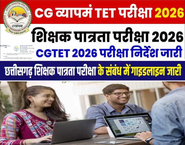 छत्तीसगढ़ व्यावसायिक परीक्षा मंडल की ओर से छत्तीसगढ़ शिक्षक पात्रता परीक्षा 2026 (सीजीटेट 26) के परीक्षा केंद्र में अभ्यर्थियों के लिए अद्यतन दिशा-निर्देश जारी किए गए हैं। टेट परीक्षा 1 फरवरी को आयोजित की जाएगी। इसमें 3 लाख से अधिक अभ्यर्थी शामिल होंगे। परीक्षार्थी, निर्देशों का अनिवार्य रूप से अवलोकन कर लें, ताकि उन्हें परीक्षा दिवस को कोई असुविधा न हो।