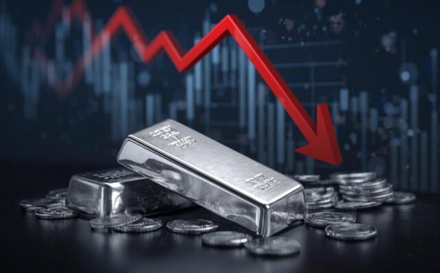 चांदी की कीमत एक झटके में लगभग 25000 रुपये प्रति किलो गिर गई है, जबकि सोने की कीमत प्रति दस ग्राम 1800 रुपये कम हुई है।