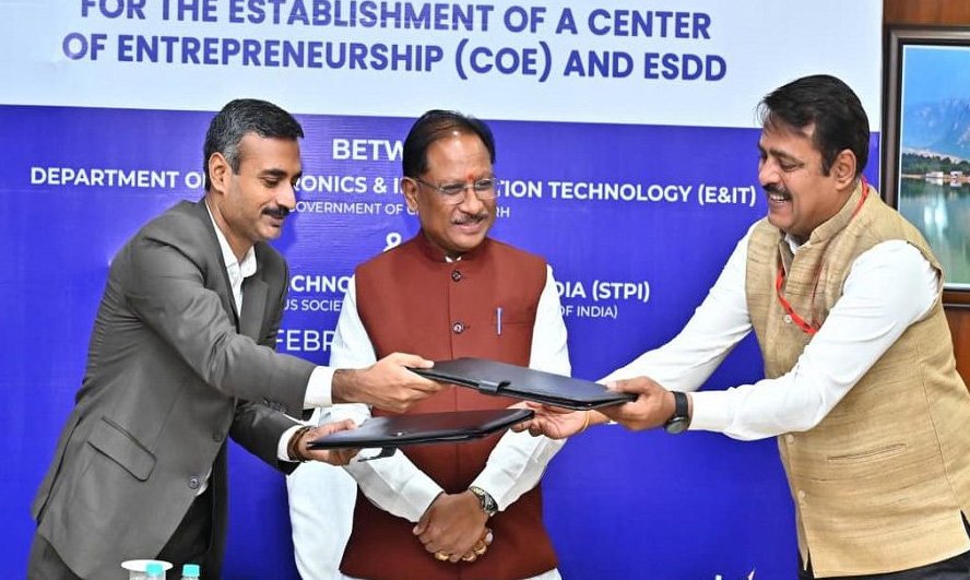 सीएम विष्णुदेव साय की मौजूदगी में इलेक्ट्रॉनिक्स एवं आईटी विभाग छत्तीसगढ़ और एसटीपीआई के बीच हुआ ऐतिहासिक समझौता। नवाचार, स्टार्टअप और कौशल आधारित रोजगार को मिलेगा बढ़ावा।