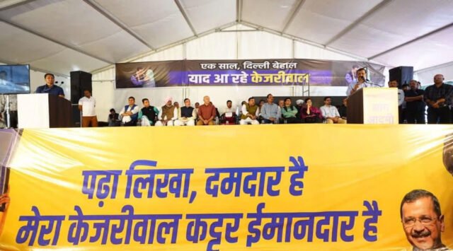 केजरीवाल कट्टर ईमानदार था, है और रहेगा. कांग्रेस के भ्रष्टाचार से तंग आकर लोगों ने बड़ी उम्मीदों से बीजेपी को पूर्ण बहुमत दिया. आज देश का हर सेक्टर बर्बाद है. इस दौरान दिल्ली, पंजाब, गुजरात, गोवा समेत विभिन्न प्रांतों से आए आप नेताओं, कार्यकर्ताओं और हजारों आम लोगों ने पढ़ा-लिखा दमदार है, मेरा केजरीवाल कट्टर ईमानदार है के जमकर नारे लगाए.