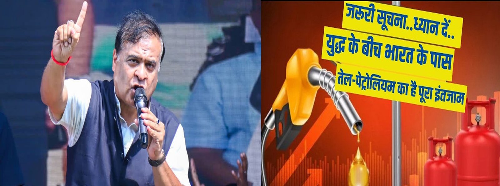 असम में हिमंता बिस्वा सरमा की बीजेपी सरकार ने LPG और पेट्रोलियम उत्पादों की कमी की अफवाहों पर सख्त कार्रवाई की चेतावनी जारी की है. मामले से संबंधित अधिकारियों ने लोगों से अपील की है कि वे ऐसे किसी भी भ्रामक संदेश या दावे पर भरोसा न करें.