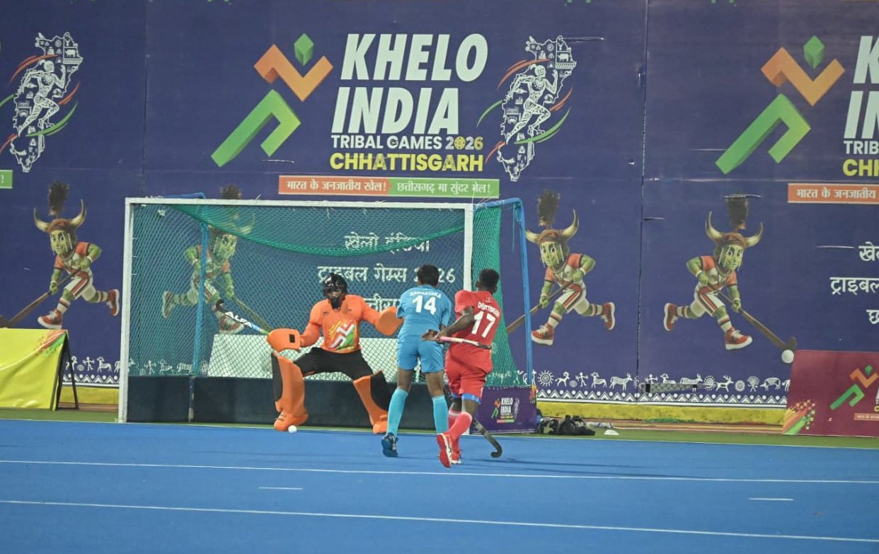 खेलो इंडिया ट्राइबल गेम्स के अंतर्गत राजधानी रायपुर स्थित सरदार वल्लभभाई पटेल इंटरनेशनल हॉकी स्टेडियम में आज तीसरे दिन पुरुष हॉकी प्रतियोगिता के सभी मैच दिलचस्प और रोमांच से भरे मुकाबले रहे।