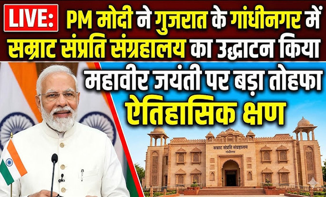 प्रधानमंत्री नरेंद्र मोदी ने आज महावीर जयंती के अवसर पर गुजरात में गांधीनगर के कोबा गांव में नवनिर्मित ‘सम्राट संप्रति म्यूजियम’ का उद्घाटन किया. श्री महावीर जैन आराधना केंद्र में स्थित इस म्यूजियम का नाम सम्राट संप्रति महाराज (224-215 ईसा पूर्व) के नाम पर रखा गया है. इस दौरान प्रणानमंत्री नरेंद्र मोदी ने कहा कि प्रधानमंत्री मोदी ने कहा, “महावीर जयंती के पावन पर्व पर मुझे इस पवित्र जैन तीर्थ आने का सौभाग्य मिला है. मैं कोबा तीर्थ से सभी को महावीर जयंती की शुभकामनाएं देता हूं.