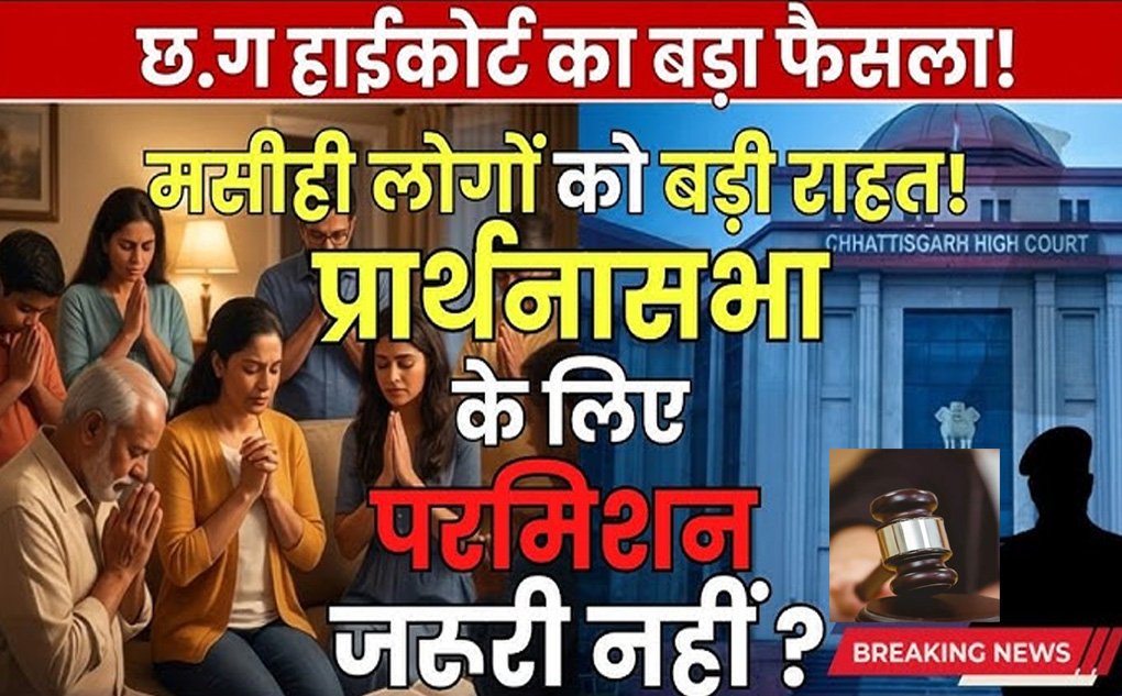छत्तीसगढ़ हाईकोर्ट ने धार्मिक मामले की याचिका पर सुनवाई करते हुए बड़ा फैसला सुनाया है. कोर्ट ने कहा कि किसी व्यक्ति को अपने घर में धार्मिक प्रार्थना सभा करने के लिए पहले से अनुमति लेने की जरूरत नहीं है, बशर्ते किसी कानून का उल्लंघन न हो. हाई कोर्ट की सिंगल बेंच ने इस मामले में पुलिस की ओर से पूर्व में जारी नोटिस को निरस्त कर दिया. कोर्ट ने पुलिस प्रशासन को याचिकाकर्ताओं के नागरिक अधिकारों में हस्तक्षेप नहीं करने का निर्देश दिया.