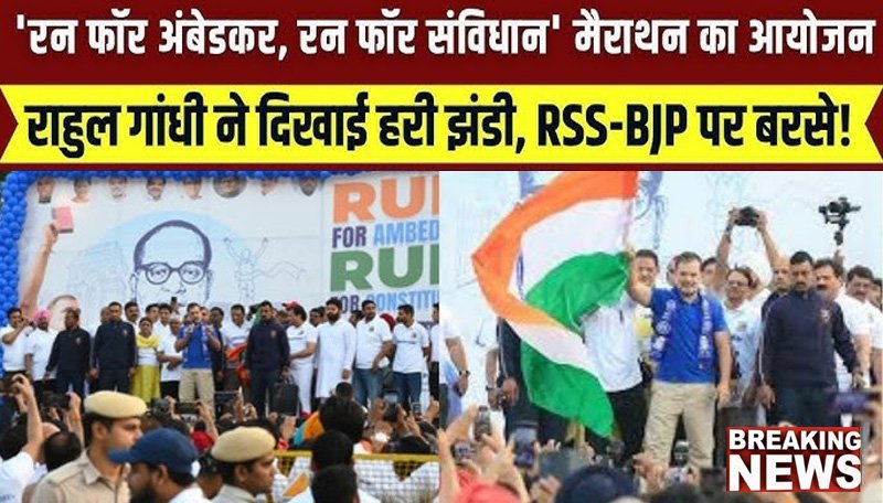 राहुल गांधी ने दिल्ली में रविवार को “रन फॉर आंबेडकर, रन फॉर संविधान” मैराथन को हरी झंडी दिखाकर रवाना किया। यह मैराथन अखिल भारतीय कांग्रेस समिति के अनुसूचित जाति विभाग द्वारा अन्य पिछड़ा वर्ग विभाग के सहयोग से आयोजित की गई। इसका मकसद युवाओं के बीच बाबा साहेब के संविधान और उनके विचारों के प्रति जागरूकता फैलाना है।