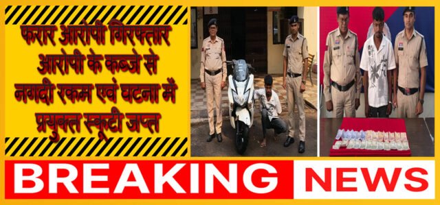 राजनांदगांव पुलिस की कार्यवाही। आरोपी ने अपने अन्य साथियों के साथ मिलकर घटना को दिया था अंजाम। आरोपी के कब्जे से नगदी रकम 8,000/- रुपये एवं घटना में प्रयुक्त स्कूटी जप्त। आरोपी को विधिवत गिरफ्तार कर न्यायिक अभिरक्षा में जेल भेजा गया।